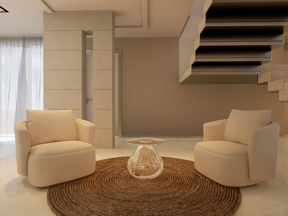 Esta ampla sala, projetada para proporcionar um refúgio acolhedor e convidativo, apresenta uma fusão harmoniosa de elementos naturais e contemporâneos.
